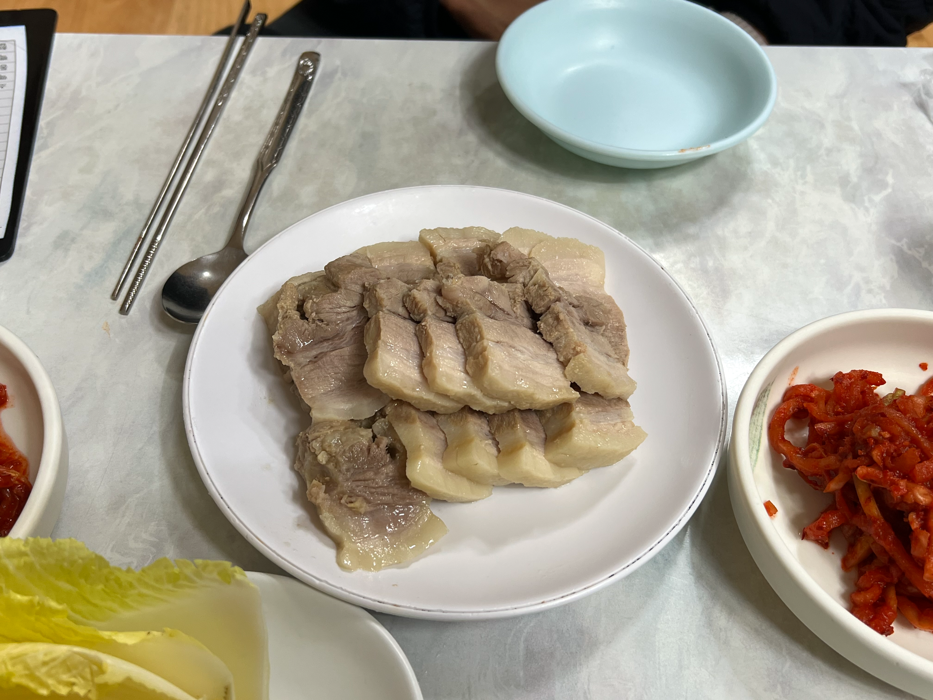 보쌈 시킨 테이블은 칼국수를 작은 그릇으로 나눠주시는 것 같더라고요.